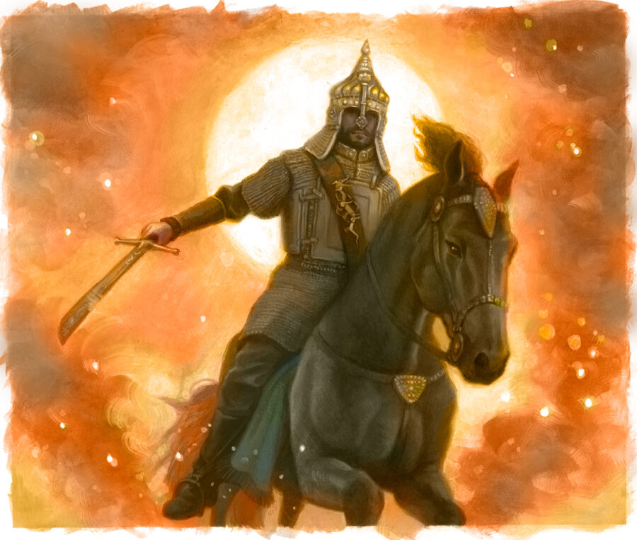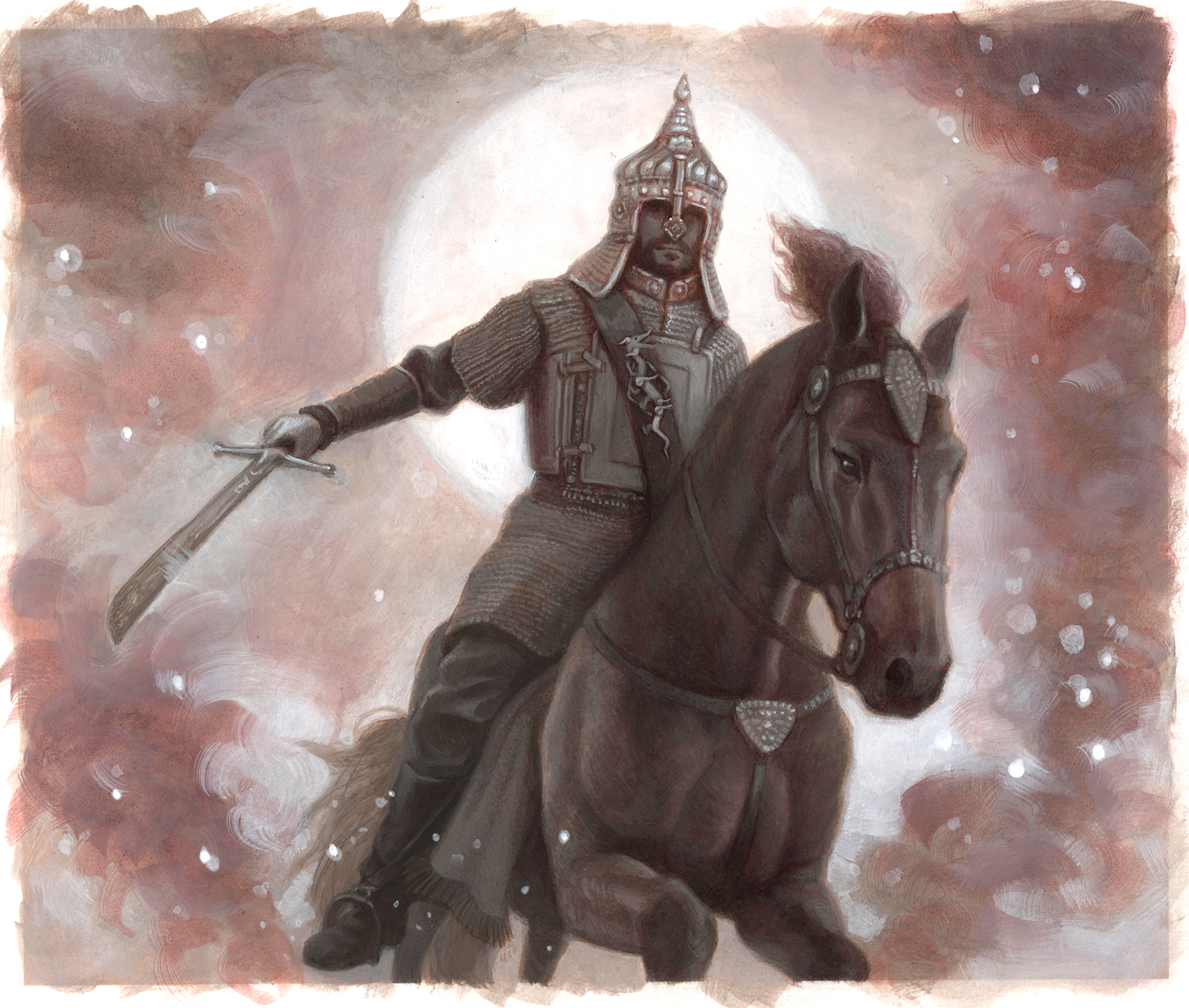 The final painting happens in one of two ways. Sometimes I complete it digitally, building on the work I’ve done in Photoshop. More often though, I return to traditional media, using the color comp as a guide while letting the painting evolve naturally under my brush. There’s something irreplaceable about working with physical paint—the texture, the spontaneity, the tangible connection between hand and surface.