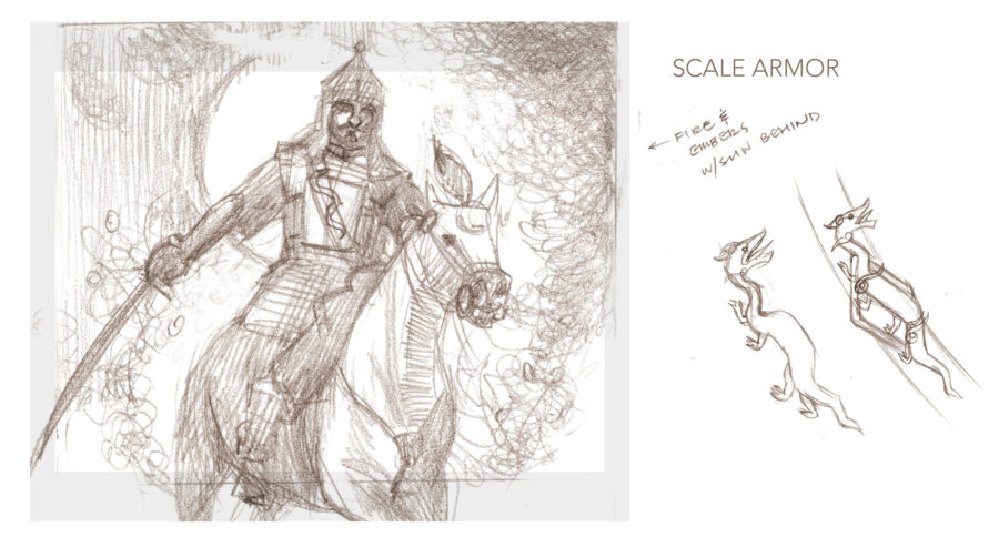 Every painting begins with exploration. I start by working through ideas in thumbnails and sketches, loosely mapping out compositions, values, and the overall feel of the piece. This stage is all about experimentation, finding what works before committing to a larger format.